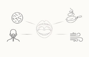 När dina östrogennivåer sjunker kan det påverka hur din mun och halsa både känns och låter. Din röst kan bli djupare eller bli mer hes. Minskat östrogen kan påverka fuktighet och slembildning samt musklerna i tungan, vilket kan bidra till att ditt uttal förändras. Kvinnor upplever ofta  muntorrhet under perioden som leder upp till menopausen och även post menopause.